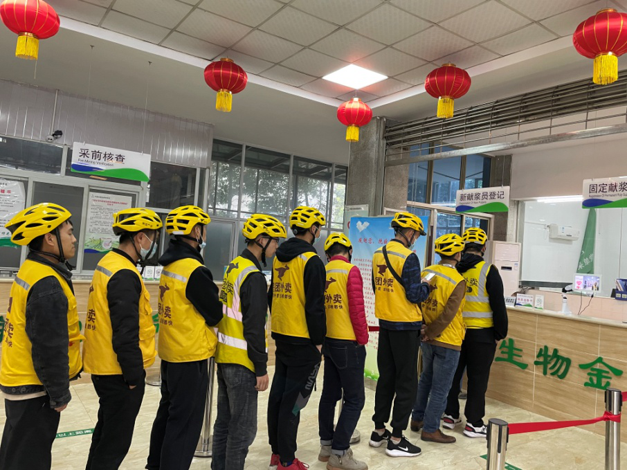 陽(yáng)春三月,草長(zhǎng)鶯飛,中國(guó)生物金堂血漿站迎來(lái)了20余位身穿亮黃工作服的美團(tuán)外賣騎手,他們此行的目的不是來(lái)送餐,而是來(lái)捐獻(xiàn)血漿,為他人的生命加油助力。